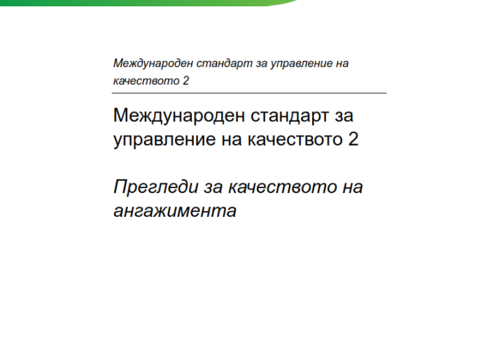 Международен стандарт за управление на качеството (МСУК) 2, Прегледи за качеството на ангажимента Audit & Assurance International Standards April 29, 2022 • iaasb.org