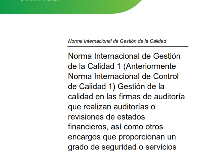 Norma Internacional de Gestión de la Calidad 1, Gestión de la calidad en las firmas de auditoría que realizan auditorías o revisiones de estados financieros, así como otros encargos que proporcionan un grado de seguridad o servicios relacionados Audit & Assurance Sustainable Organizations & Sustainability Transformation International Standards December 3, 2021 • iaasb.org