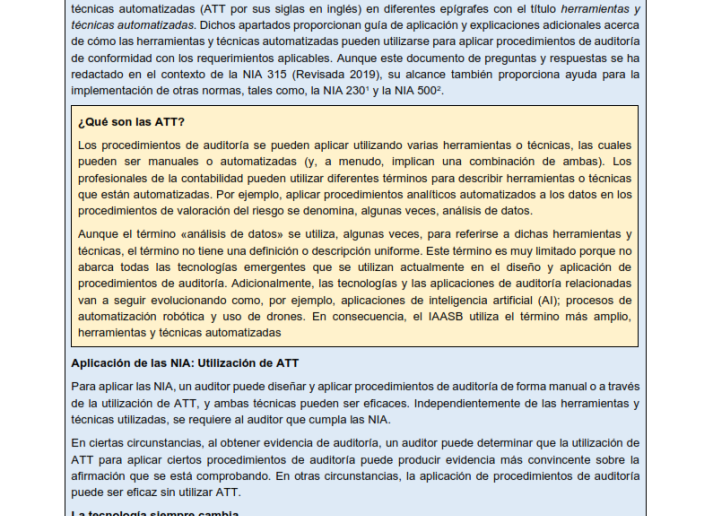 Material de apoyo no obligatorio: Utilización de herramientas y técnicas automatizadas para identificar riesgos de incorrección material de conformidad con la NIA 315 (Revisada) International Standards December 3, 2021 • iaasb.org