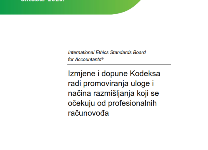 Izmjene i dopune Kodeksa radi promoviranja uloge i načina razmišljanja koji se očekuju od profesionalnih računovođa, konačna objava oktobar, 2020. International Standards April 13, 2021 • ethicsboard.org