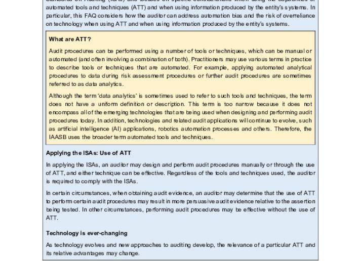 Addressing Risk of Overreliance on Technology Arising from the Use of Automated Tools and Techniques and from Information Produced by an Entity’s Systems International Standards March 18, 2021 • iaasb.org