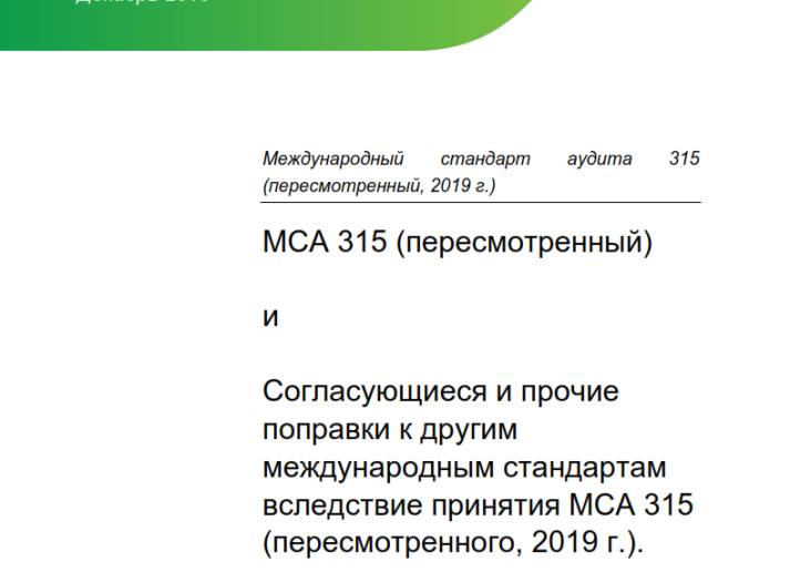 МЕЖДУНАРОДНЫЙ СТАНДАРТ АУДИТА 315 (ПЕРЕСМОТРЕННЫЙ 2019 г.) " ВЫЯВЛЕНИЕ И ОЦЕНКА РИСКОВ СУЩЕСТВЕННОГО ИСКАЖЕНИЯ" Audit & Assurance International Standards February 4, 2021 • iaasb.org