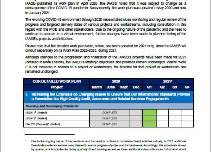 IAASB Revised Detailed Work Plan Table for 2020‒2021 International Standards February 1, 2021 • iaasb.org