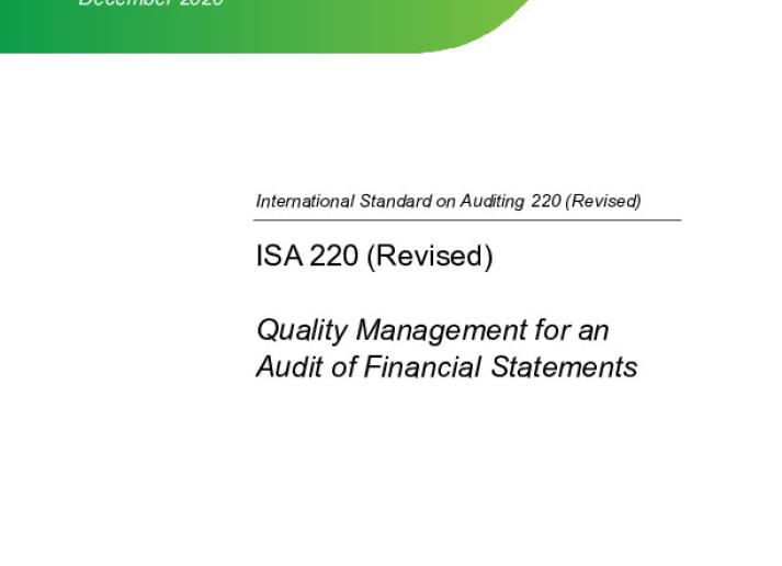 International Standard on Auditing 220 (Revised), Quality Management for an Audit of Financial Statements International Standards December 17, 2020 • iaasb.org