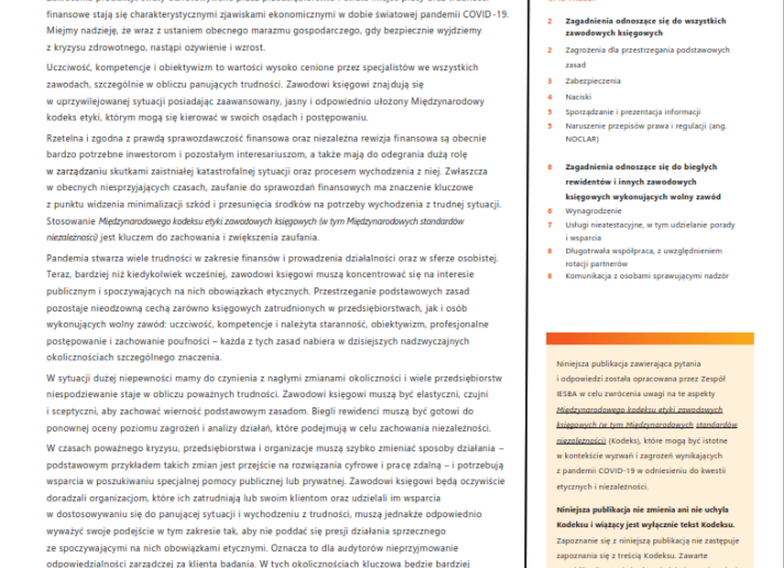 COVID-19: Aspekty etyczne oraz rozważania dotyczące niezależności International Standards December 9, 2020 • ethicsboard.org