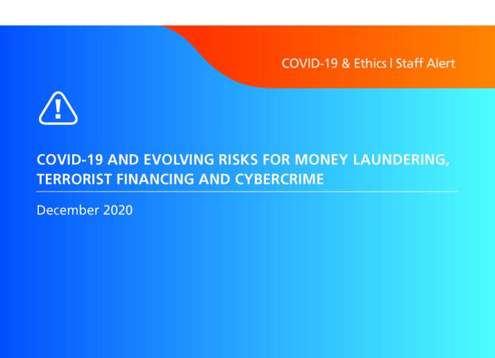 COVID-19 and Evolving Risks for Money Laundering, Terrorist Financing and Cybercrime International Standards December 16, 2020 • ethicsboard.org