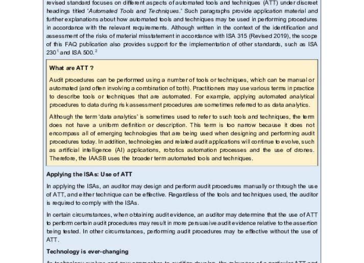 Non-Authoritative Support Material: Using Automated Tools and Techniques When Identifying Risks of Material Misstatement in Accordance with ISA 315 (Revised) International Standards November 18, 2020 • iaasb.org