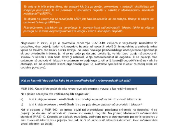 Kasnejši dogodki v sedanjih spreminjajočih se okoliščinah - revizijski premisleki glede vpliva COVID-19 International Standards October 14, 2020 • iaasb.org