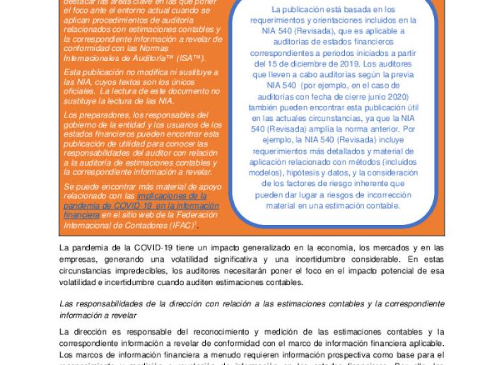 Alerta del personal para el ejercicio de la auditoria: Auditoría de estimaciones contables en el entorno actual cambiante derivado de la COVID-19 International Standards October 20, 2020 • iaasb.org