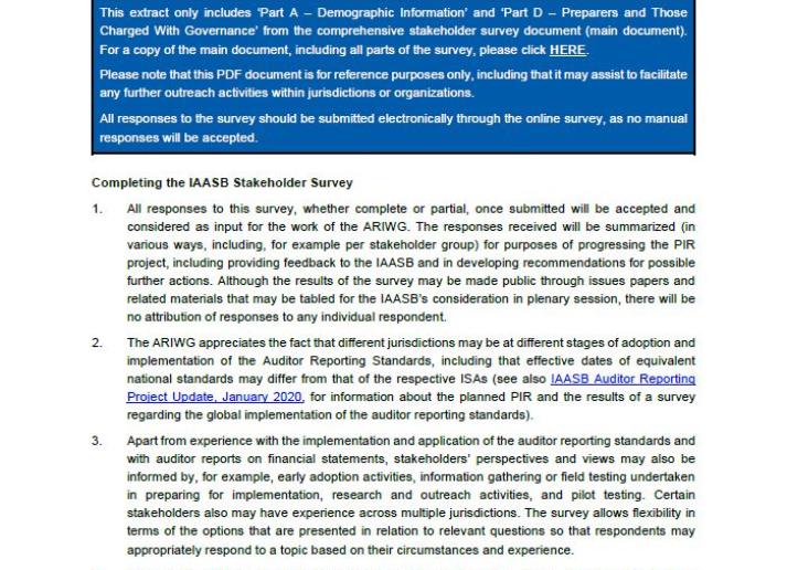 IAASB Auditor Reporting Post-Implementation Review Survey Part D - Preparers and Those Charged with Governance International Standards July 27, 2020 • iaasb.org