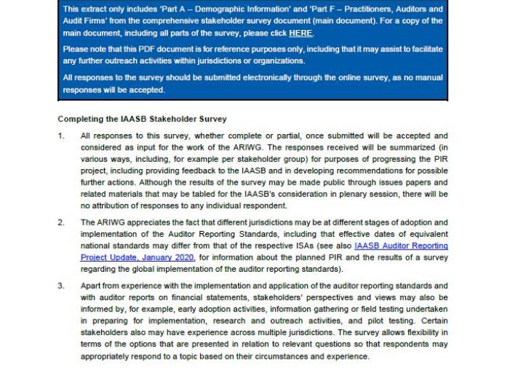 IAASB Auditor Reporting Post Implementation Review Survey Part F - Practitioners, Auditors and Audit Firms International Standards July 27, 2020 • iaasb.org