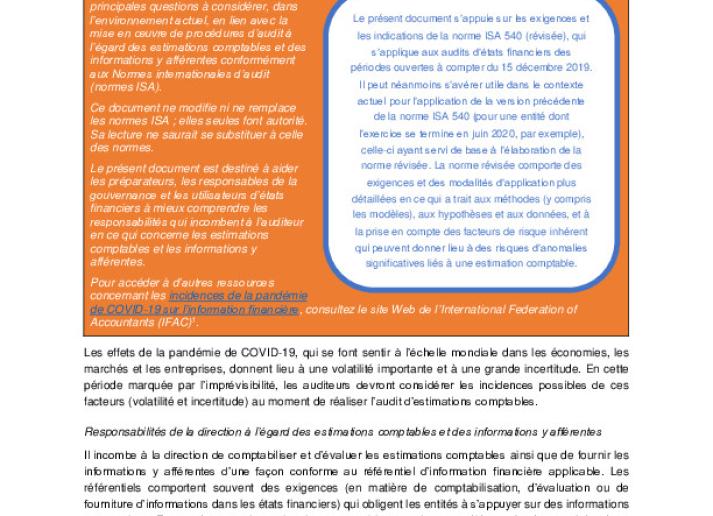 Audit des estimations comptables dans un environnement perturbé par la COVID-19 International Standards July 22, 2020 • iaasb.org