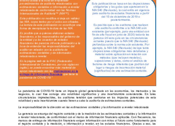 Auditoría de estimaciones contables en el cambiante entorno actual debido al COVID-19 International Standards July 23, 2020 • iaasb.org