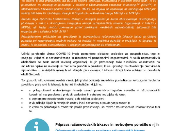 Revizorjevo poročanje v sedanjih spreminjajočih se okoliščinah zaradi COVID-19 International Standards July 14, 2020 • iaasb.org