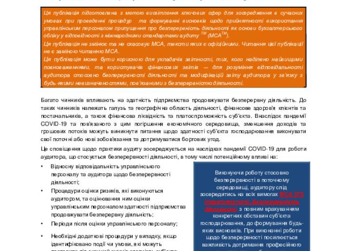 Сповіщення персоналу РМСАНВ щодо практики аудиту: Безперервність діяльності у поточному середовищі, що розвивається ―розгляд аудитором впливу COVID-19 International Standards July 3, 2020 • iaasb.org