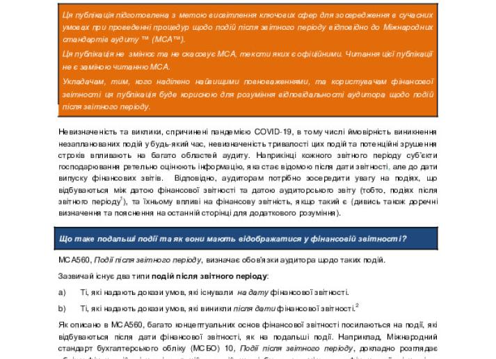 Сповіщення персоналу РМСАНВ щодо практики аудиту: Події після звітного періоду в поточному середовищі, що розвивається ―Розгляд аудитором впливу COVID-19 International Standards July 3, 2020 • iaasb.org