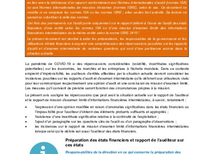 Rapport de l’auditeur dans un environnement d’audit perturbé par la COVID-19 International Standards June 19, 2020 • iaasb.org