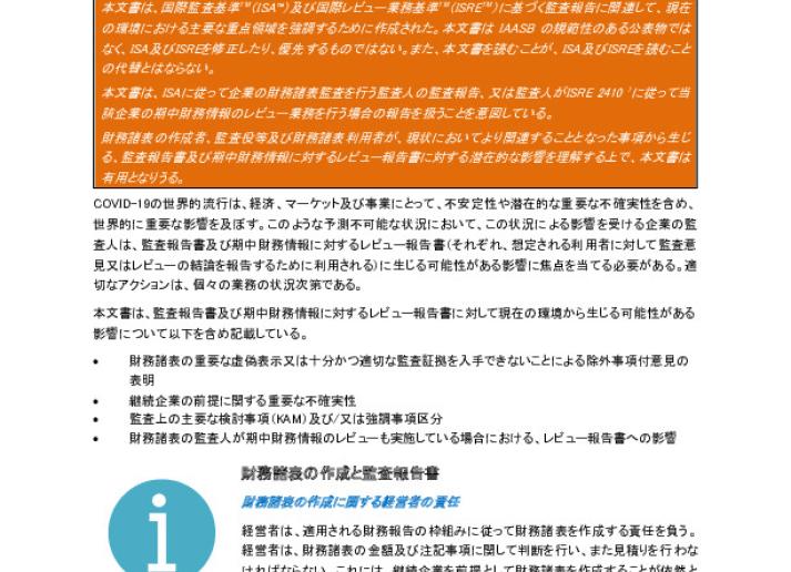 【IAASB】監査実務に関するスタッフ文書「変化し続ける環境下での監査報告書について - 新型コロナウイルス感染症(COVID-19)の影響」の翻訳の公表について International Standards June 10, 2020 • iaasb.org