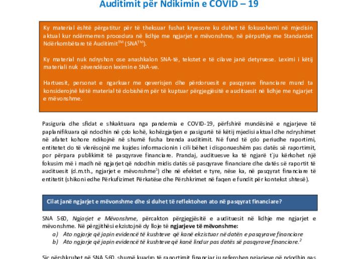 Ngjarjet e Mëvonshme në Mjedisin Aktual – Konsideratat e Auditimit për Ndikimin e COVID-19 International Standards June 9, 2020 • iaasb.org