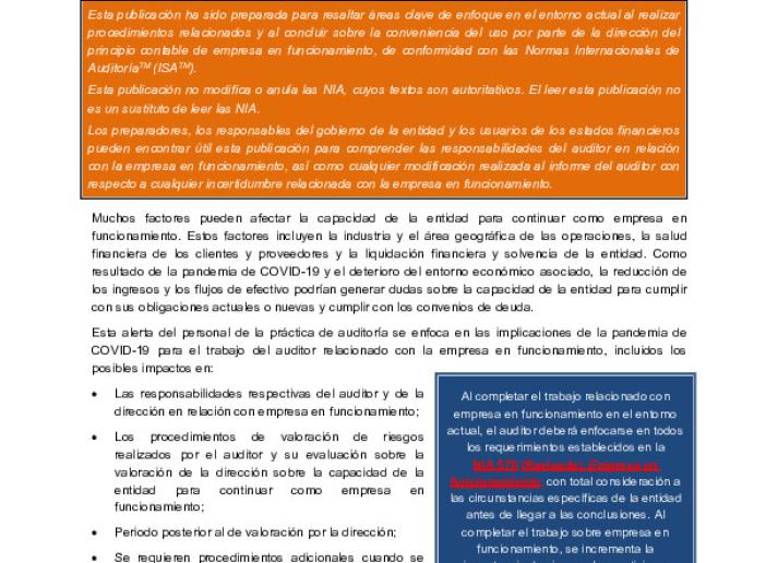Alerta del personal de la práctica de auditoría: Empresa en funcionamiento International Standards May 13, 2020 • iaasb.org