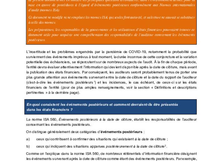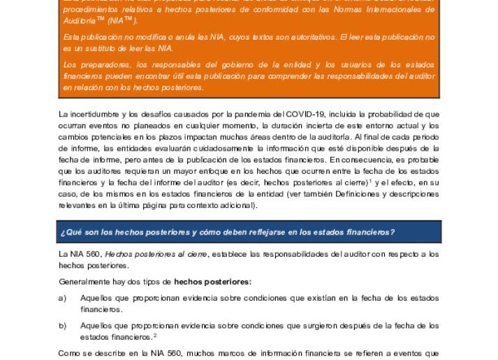 Eventos subsecuentes en el entorno actual en evolución―Consideraciones de auditoría para el impacto de COVID-19 International Standards May 22, 2020 • iaasb.org