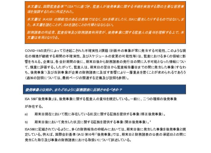「変化し続ける環境下での後発事象-新型コロナウイルス感染症(COVID-19)の影響に関する監査上の留意事項」の日本語のテキスト International Standards May 28, 2020 • iaasb.org
