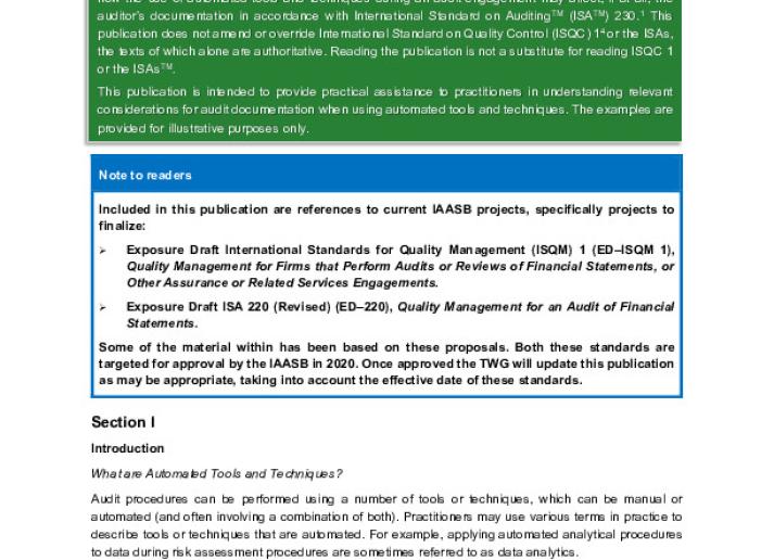 Non-Authoritative Support Material: Audit Documentation When Using Automated Tools and Techniques International Standards April 23, 2020 • iaasb.org