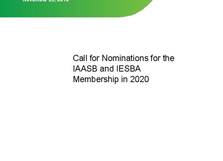 Call for Nominations for the IAASB and IESBA Membership in 2020 International Standards November 29, 2018 • iaasb.org