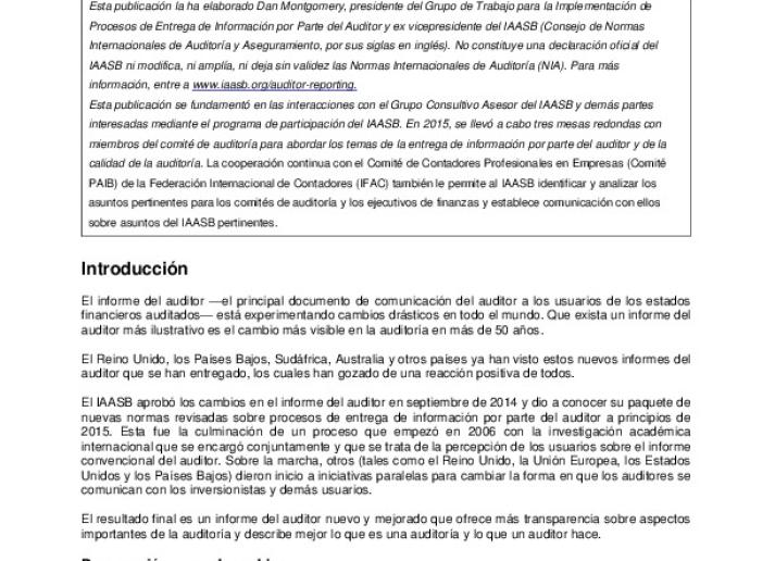 Informes del auditor más ilustrativos (lo que los comités de auditoría y los ejecutivos de finanzas necesitan saber) Audit & Assurance International Standards October 29, 2018 • iaasb.org