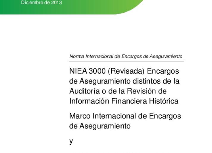 NIEA 3000 (Revisada) Encargos de Aseguramiento distintos de la Auditoría o de la Revisión de Información Financiera Histórica, Marco Internacional de Encargos de Aseguramiento y las Modificaciones de concordancia de otras NIEA International Standards April 20, 2018 • iaasb.org